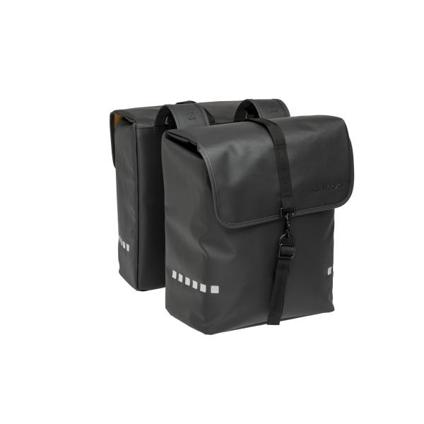Nice spacious panniers, compatible with groceries. Easy to take a bag in and out. However, the bags are not waterproof, and water runs in easily. Then they stay wet inside for a long time. The closure is not ideal either, metal hooks instead of snap closure, which rattle when not tight - and tightening the strap is very laborious. All in all, the functionality is disappointing for the money.
